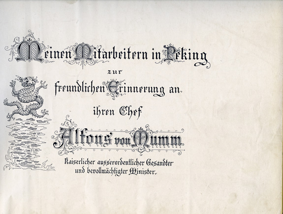 01.06.1902: Alfons von Mumm Schwarzenstein: "Ein Tagebuch in Bildern", Graphische Gesellschaft Berlin 1902. Ein limitiertes Bildband (Nr.610) mit historischen Aufnahmen aus China 1900 bis 1902 des Kaiserlichen außerordentlichen Gesandten & Ministerin Peking - Nachfolger des im Boxer-Aufstand ermordeten Graf Clemens von Ketteler.
