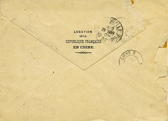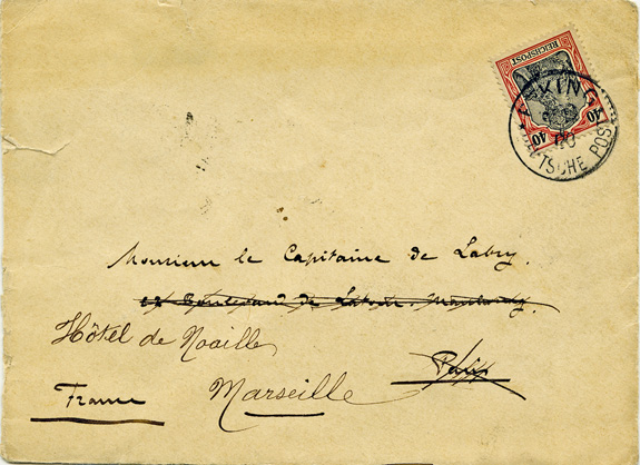 09.12.1900, Petschili: 40Pf (Mi.Vf) mit Stempel PEKING an "Capitaine de Labry, Paris", handschriftlic geändert in "Hotel de Noaille, Marseille". Rückseitige Klappenadresse: "Legation de la Republique Francaise / EN CHINE", Transitstempel franz. Seepost "LIGNE N" & AkSt MARSEILLE (29.01.01). Brief 3-seitig geöffnet.