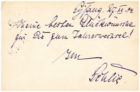 27.12.1904: 5Pf Ganzsachenkarte (Mi.P1) an Oberarzt "Dr.Eckart" am "Lazareth-Laboratorium" in Tientsin. Absender ist der Stabsveterinär "Schlie" aus Syfang mit violettem Absenderstempel.