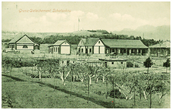 15.06.1912: 1C (Mi.28 I) mit Stempel TSINGTAU "c" auf Drucksachen-Ansichtskarte "Grenz-Detzachement Schatsekou" nach Posen.