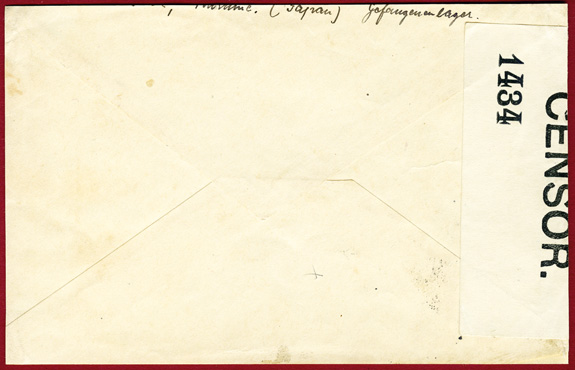 01.01.17, Kurume: Schreiben der Kriegsgefangenen-Fürsorge aus New York an den Gefangenen Seesoldaten Edmund Fischer, Zensur dokumentiert mit dem Lagerstempel "B".