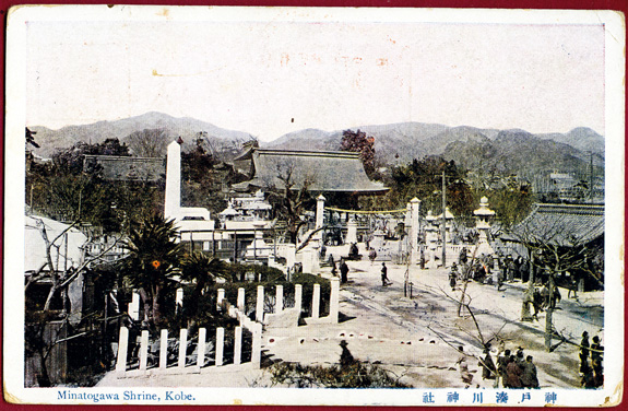 02.06.16, Kurume: Empfangsbestätigung über 1 Päckchen auf Ansichtkarte "Minatogawa Shrine, Kobe" geschrieben von Seesoldat Walter Lange (ehemals 4.K.III.S.B.) nach Waldkirchen mit Lagerstempel "A" , orangem SdPdG-Stempel Typ I zusätzlich zum handschr. gleichen Vermerk, Leitstempel und Auslandsstempel MOJI (8.6.16).