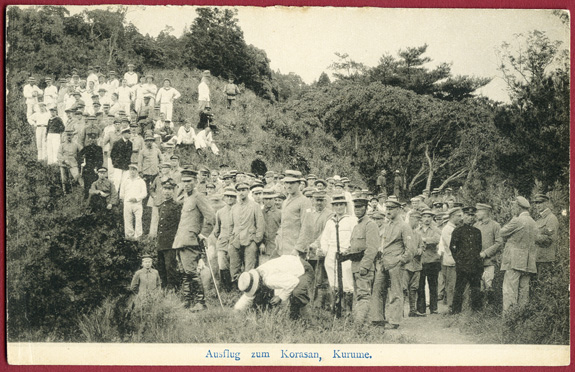 ca.1917, Kurume: ungebrauchte Ansichtskarte mit gefangenen Deutschen Soldaten bei einem Ausflug zum Korasan, Kurume.