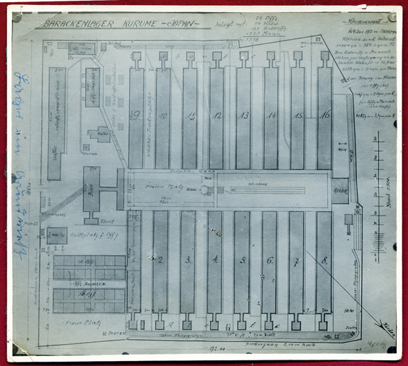 1918, Kurume: Foto vom Ausstellungsobjekt: Nachbildung des " Kriegsgefangenen-Lagers Kurume" , anlässlich der III. Kunst- und Gewerbe-Ausstellung 1918.