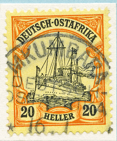 16.01.??: 20 Heller (Mi.26) Einzelmarke mit Stempel klarem schönem Teilabschlag MKUMBARA