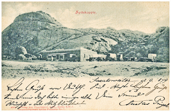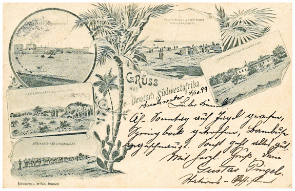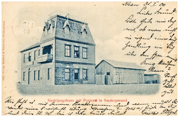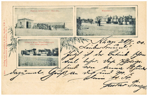 1899-1900: 5 verschieden Ansichtskarten, mehrheitlich mit Bahn- bzw.Militärgebäude-Motiven aus der Korrespondenz des Stationsvorstehers in Khan, Gustav Pingel, mit einem Adressaten in Iserlohn/Münster. 3 der AKs mit Wanderstempel JAKALSWATER, die restlichen AKs mit SWAKOPMUND. Schönes Lot.
