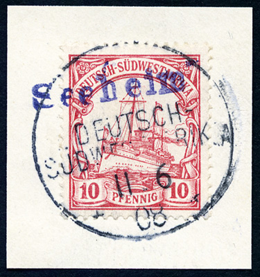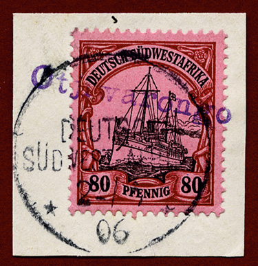 24.07.06: Luxus-Briefstück mit 80Pf (Mi.19) und violettem Wanderstempel "Otjiwarongo" (ArGe 2)