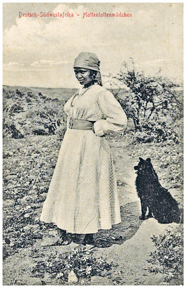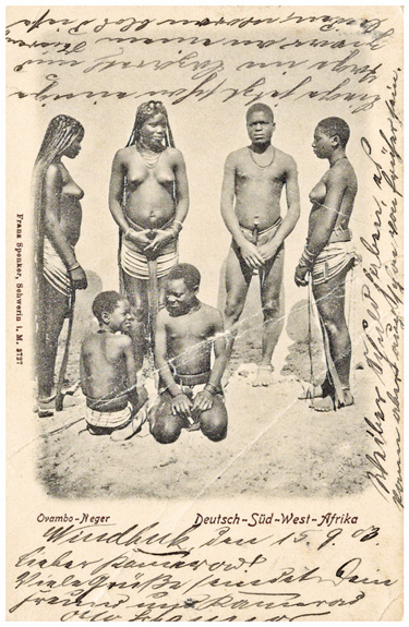 1903-10, 5 gebrauchte AKs mit Abbildung von Bergdamaras, Ovambo, Hottentottenmädchen, Ochsengespann & Leuchtturm von Swakopmund.