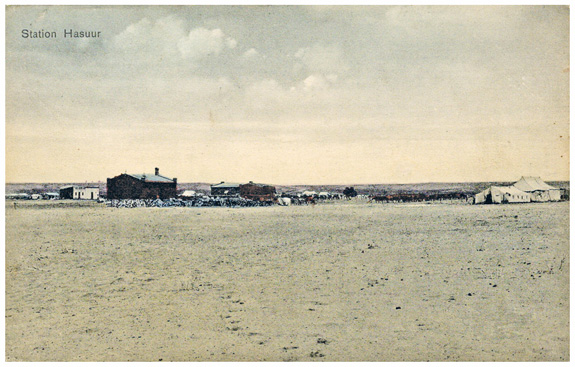 18.01.11: 5Pf (Mi.25) mit Stempel LÜDERITZBUCHT auf AK "Station Hasuur" nach Hannover; Absenderangabe von SMS "Panther".