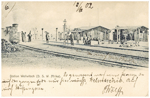 13.06.1902: 5Pf (Mi.12) mit Wanderstempel KAPENOUSSEU (ArGe 2) auf Ansichtskarte "Station Wellwitsch.." nach BERLIN (30.7.02).
