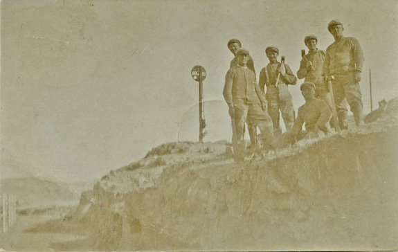 25.05.08: Foto-Ansichtskarte von 6 Soldaten beim Bahnbau im Süden, mit 5Pf (Mi.25) von LÜDERITZBUCHT an einen Reiter der I.Feldtelegraphen-Abteilung in Gobabis.