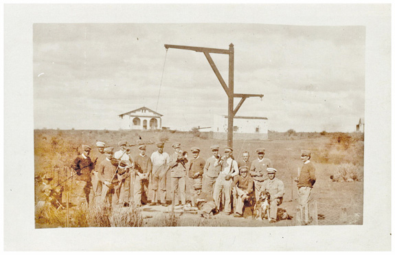 ca. 1910: Originalfoto von einigen Schutztrupplern beim Freizeitvergnügen mit Musikinstrumenten und einem ungewöhnlichem "Kegelmast".