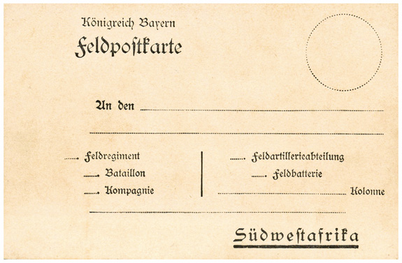 ca.1904, Herereoaufstand: ungebrauchte Feldpostkarte "Königreich Bayern" (Vogenbeck H-SWA Nr.16) aus Südwestafrika #NAME?