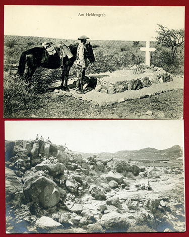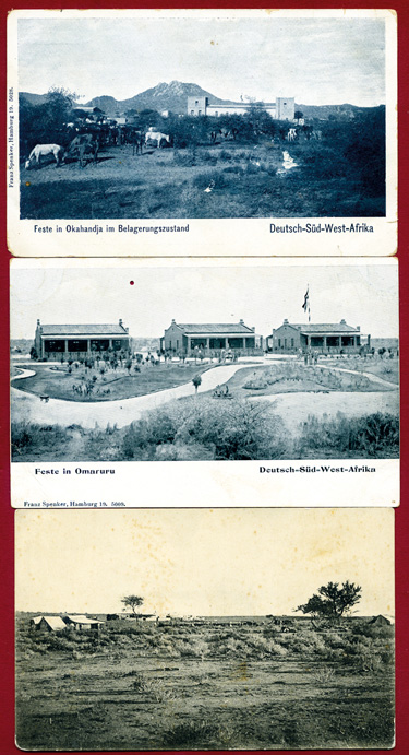 ca.1905-18: 5 ungebr. Ansichtskarten mit Schutztruppen-Motiven aus DSWA, dabei Feste Okahandja, Feste Omaruru, Lager der 3. Feldkompagnie, Heldengrab und Weltkriegs-Foto-Ak aufgenommen bei Kubub.