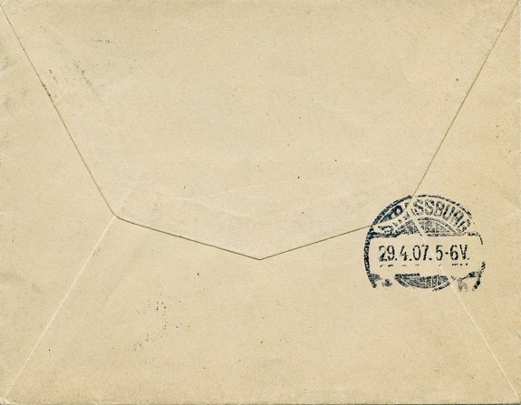 02.04.07: Feldpost-Brief mit Stempel WARMBAD und Leitvermerk "Via Port Nolloth" vom Rittmeister Haegele nach Straßburg (29.4.07).