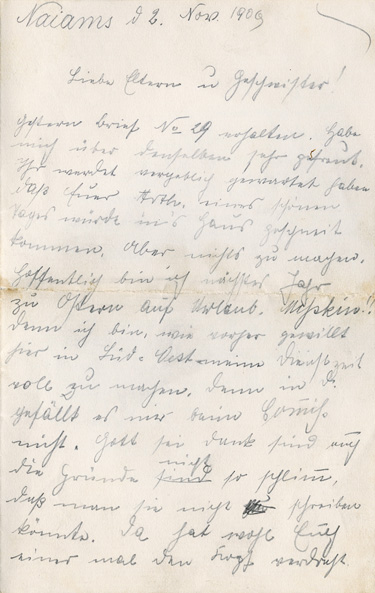 09.11.06: Feldpostbrief mit violettem Wanderstempel "Aus" & schwachem SB-Stempel nach ALTRANSTADT (12.12.06). Brief aus Naiams mit 4-seitigem Inhalt. Alterspatina & kleine Randmängel.