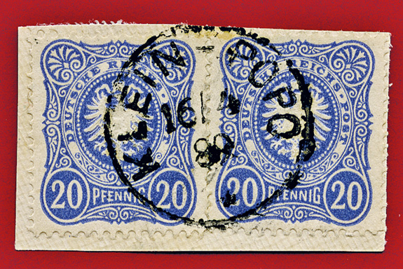 16.04.1889: Vorläufer Paar 20Pf (Mi.V42c) auf Briefstück mit Stempel KLEIN-POPO