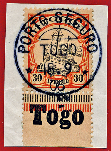 18.09.1906: 30Pf (Mi.12) auf Briefstück mit sauberem Stempel PORTO SEGURO