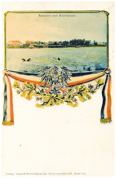ca.1910: ungebrauchte patriotische Farb-Litho-Ansichtskarte "Ansicht von Kleinpopo" mit Reichsadler.