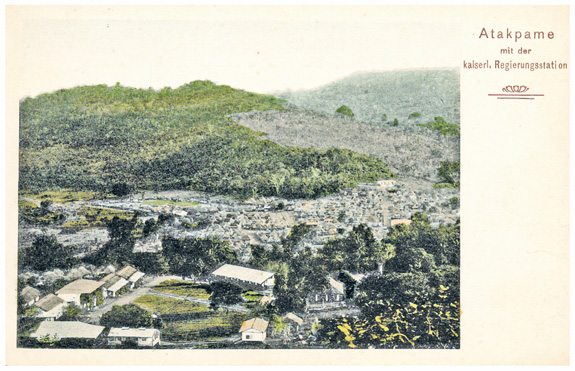 ca.1910: ungebrauchte Farb-Litho-Ansichtskarte "Atakpame mit der kaiserl.Regierungsstation"