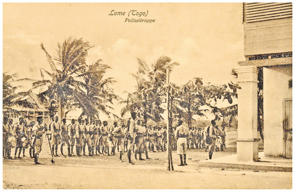 ca.1910: ungebrauchte Litho-Ansichtskarte "Lome (Togo) Polizeitruppe"