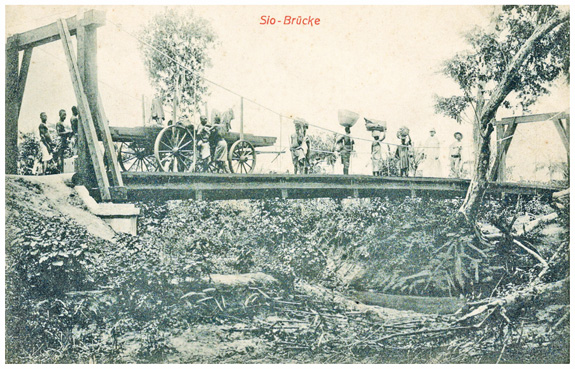 ca.1910: ungebrauchte Litho-Ansichtskarte "Sio-Brücke" (Hrsg. Verlag Kathol.Mission Lome)