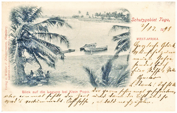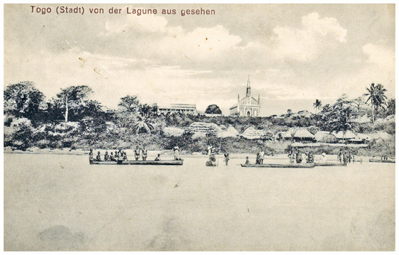 ca.1910: ungebrauchte Litho-Ansichtskarte "Togo (Stadt) von der Lagune aus gesehen" (Hrsg. Verlag Kathol.Mission Lome)