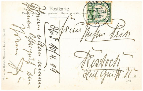 08.03.02: 5Pf GSK (Mi.P9) mit Stempel KLEIN-POPO geschrieben in "Atakpame d. 3.März 1902" nach Trier (28.3.02); Missionarstext vom Pater Witte.