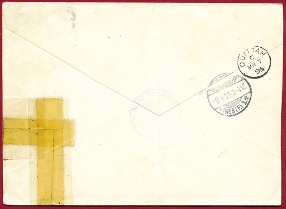 06.03.95: 4 x DR 5Pf (Mi V46c) mit 5 x Stempel KLEIN- POPO auf Brief mit rückseitigem Absenderstempel der Kathol. Präfektur nach Münster (9.4.95). Trotz Leitvermerk "Via Kotonou" (Dahomey) ging der Brief über Quittah/Goldküste (7.3.95) und London (7.4.95). Zwei Marken wurden vom Brief getrennt, dabei eine Marke beschädigt, dann jedoch mit rückseitiger Stützung wieder eingefügt.
