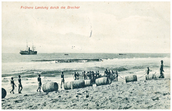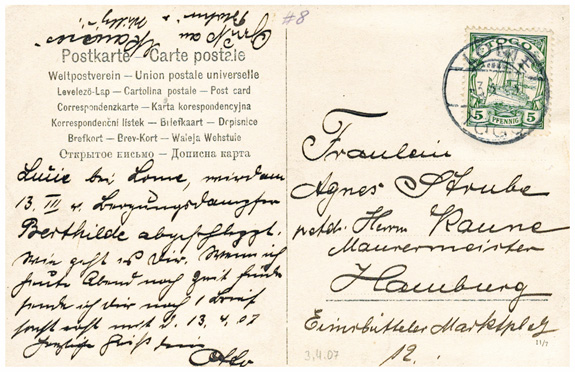 03.04.1907: 5Pf (Mi.8) mit Stempel LOME auf Fotoansichtskarte (gestrandeter Dampfer Lucie Woermann) nach Hamburg; Bedarfstext.