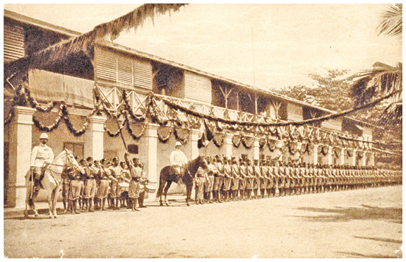 ca.1900: ungebrauchte Litho-Ansichtskarte "Polizeitruppe in Lome"