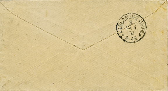 07.03.1888: DR 20Pfg (Mi.42c) mit Rahmenstempel AUS WESTAFRIKA und Abgangsvermerk "Quitta 7/3.88" auf Brief nach Karlsruhe (10.4.88); vs kl.Aufrauhung.